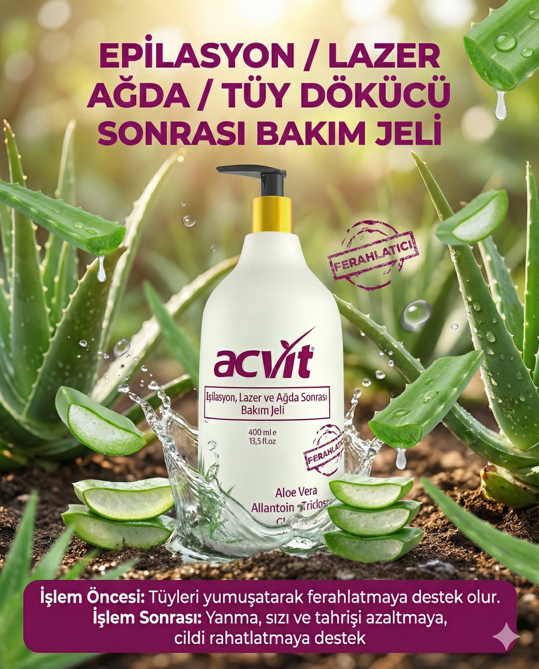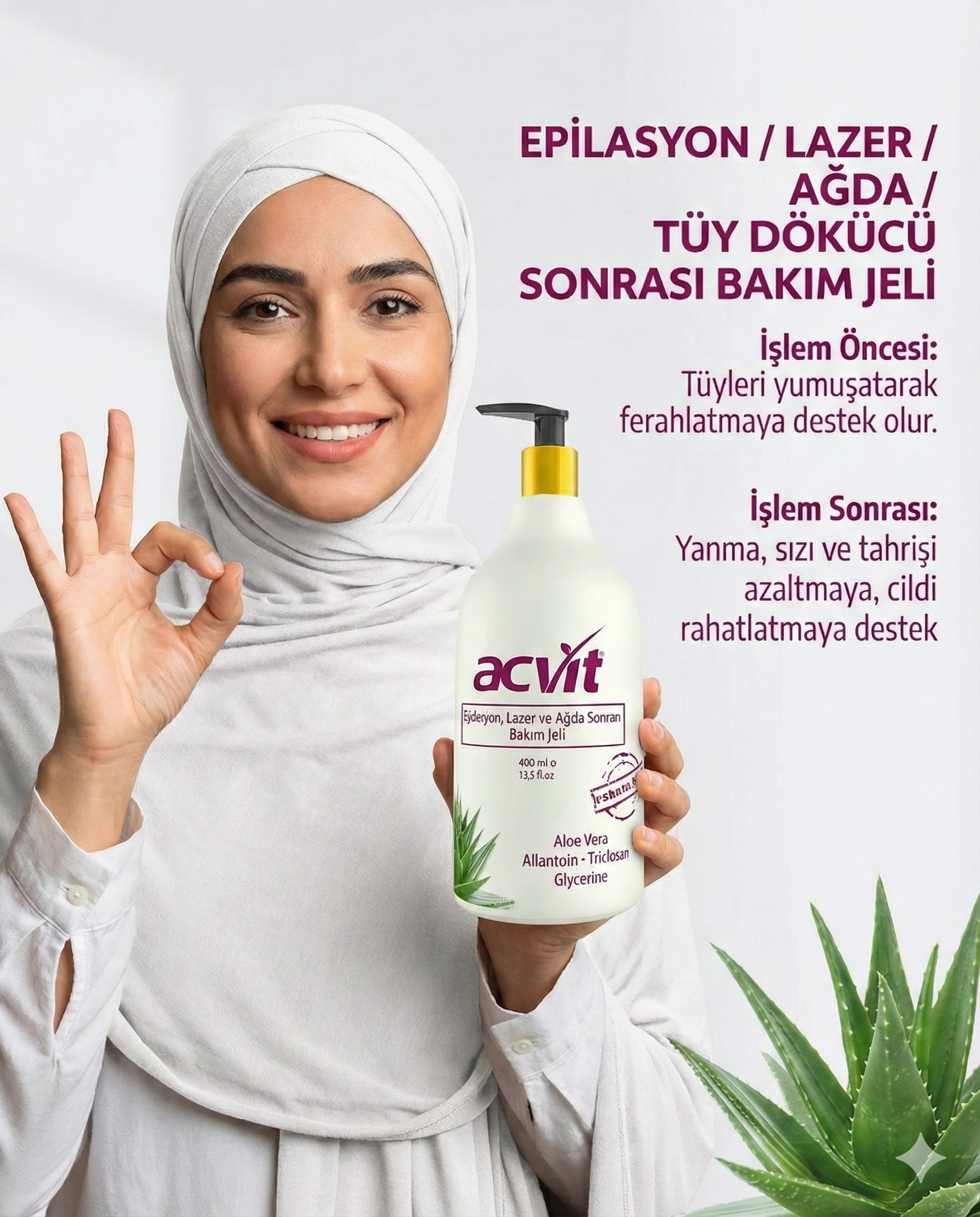 Epilasyon, Lazer, Ağda ve Tüy Dökücü Sonrası Bakım ve Ferahlatıcı Jel – 400 ML.